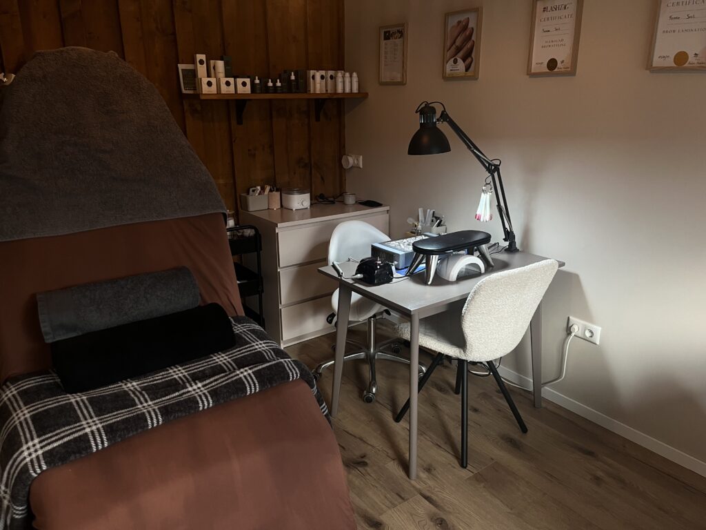 Ik werk in een rustige, sfeervolle ruimte en neem de tijd voor massages, gezichtsbehandelingen, wenkbrauw- en wimperstyling en BIAB- en gelakbehandelingen.